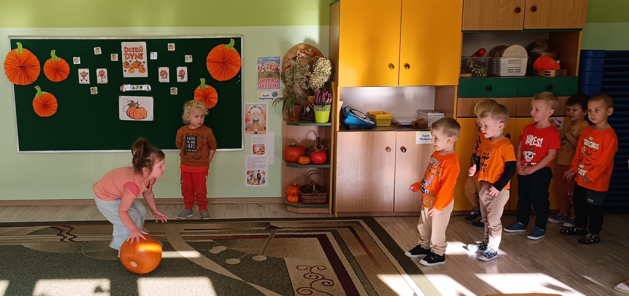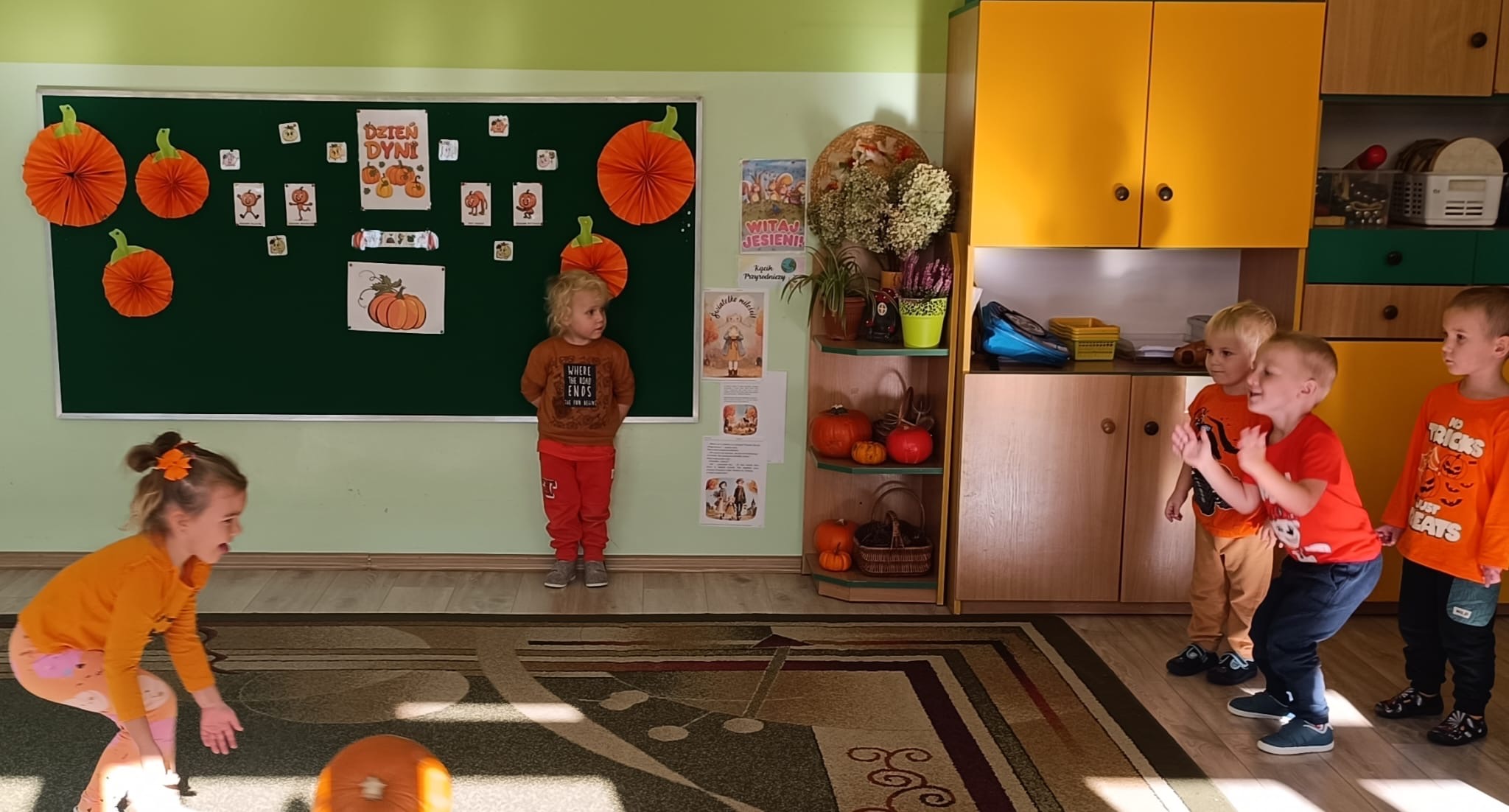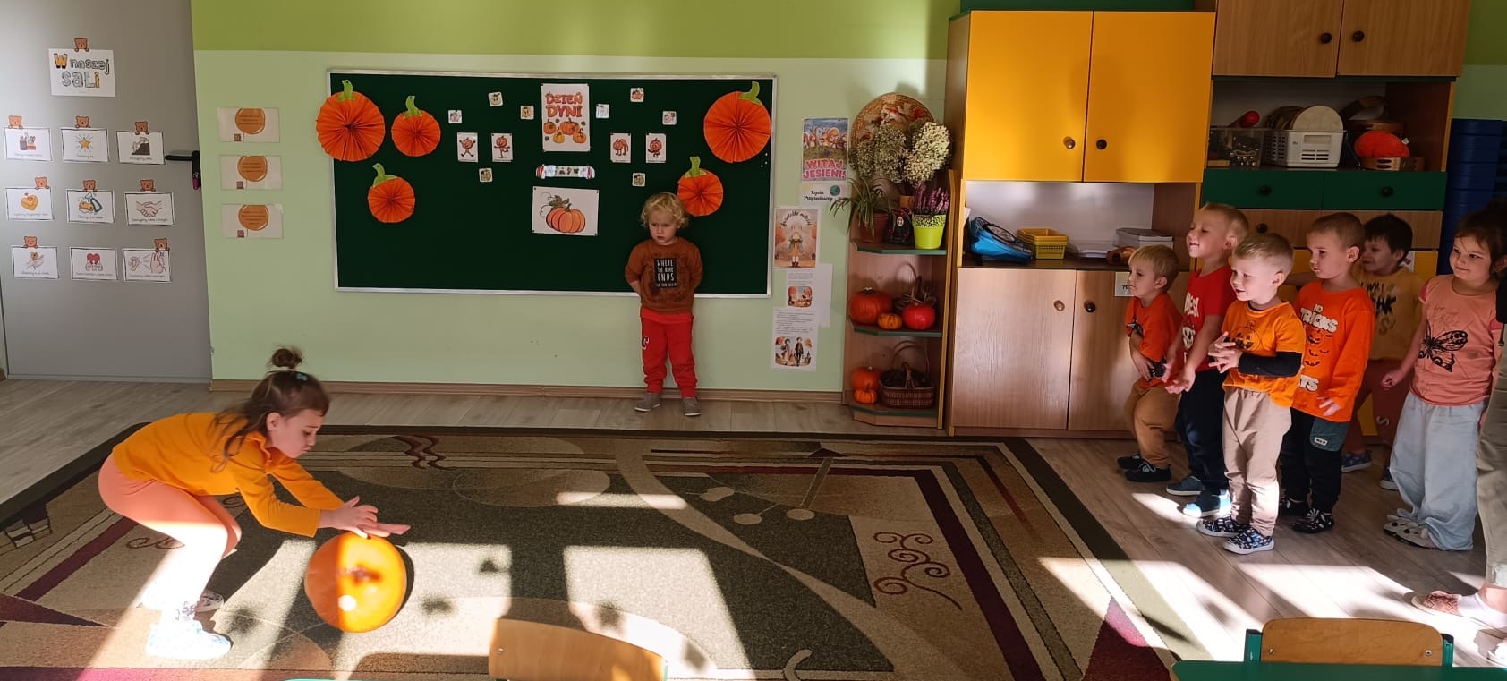 Tego dnia w salach królowały dynie – małe, duże, okrągłe i podłużne. Przedszkolaki brały udział w dyniowych konkurencjach sportowych, zabawach ruchowych, wykonywały prace plastyczne. Nie zabrakło też wspólnych rozmów o budowie i właściwościach odżywczych dyni. Dzieci z radością uczestniczyły w zajęciach, rozwijały swoją kreatywność i współpracę w grupie.