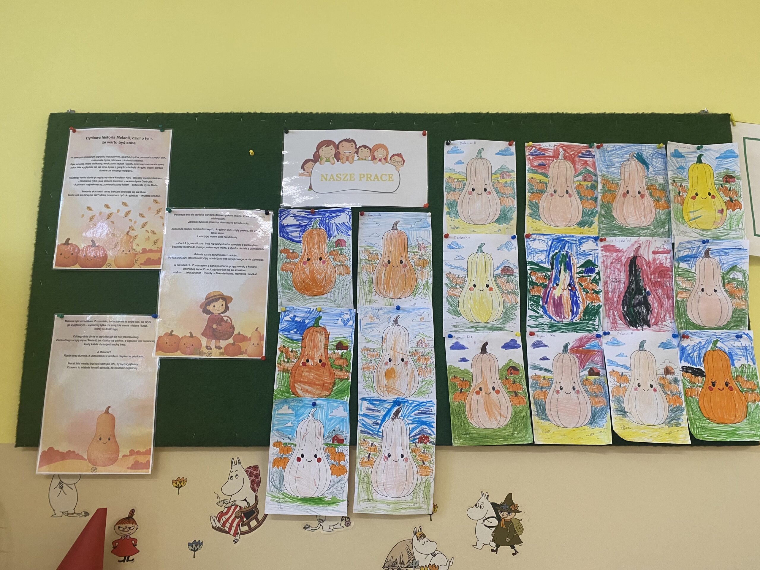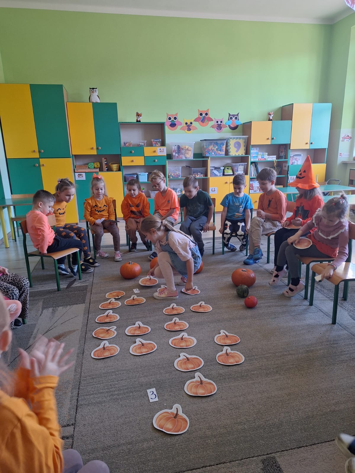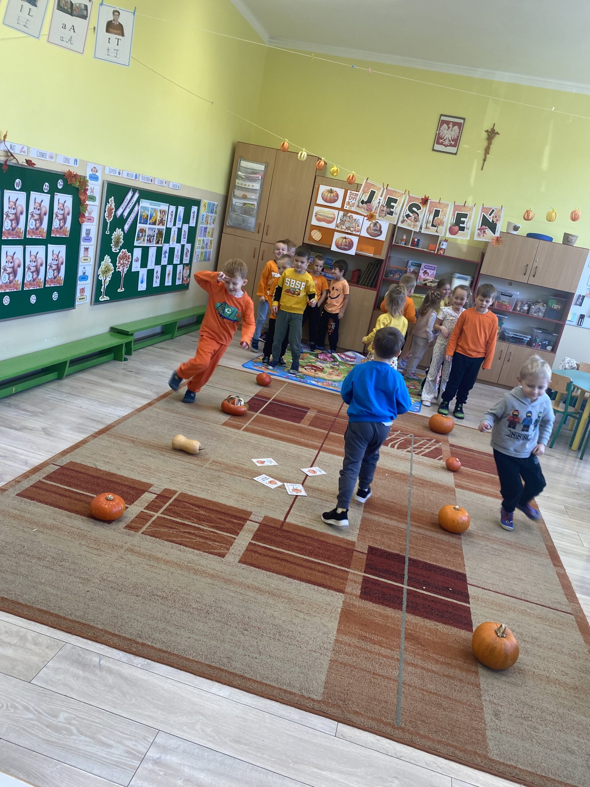 Tego dnia w salach królowały dynie – małe, duże, okrągłe i podłużne. Przedszkolaki brały udział w dyniowych konkurencjach sportowych, zabawach ruchowych, wykonywały prace plastyczne. Nie zabrakło też wspólnych rozmów o budowie i właściwościach odżywczych dyni. Dzieci z radością uczestniczyły w zajęciach, rozwijały swoją kreatywność i współpracę w grupie.