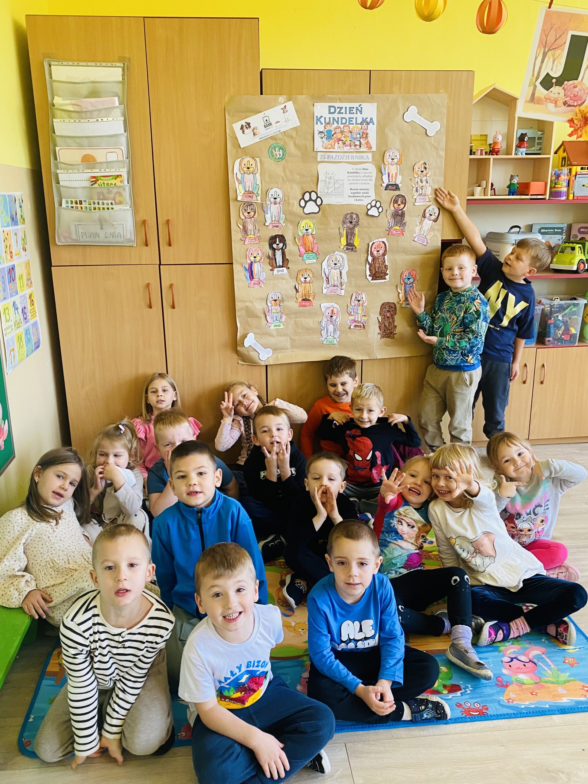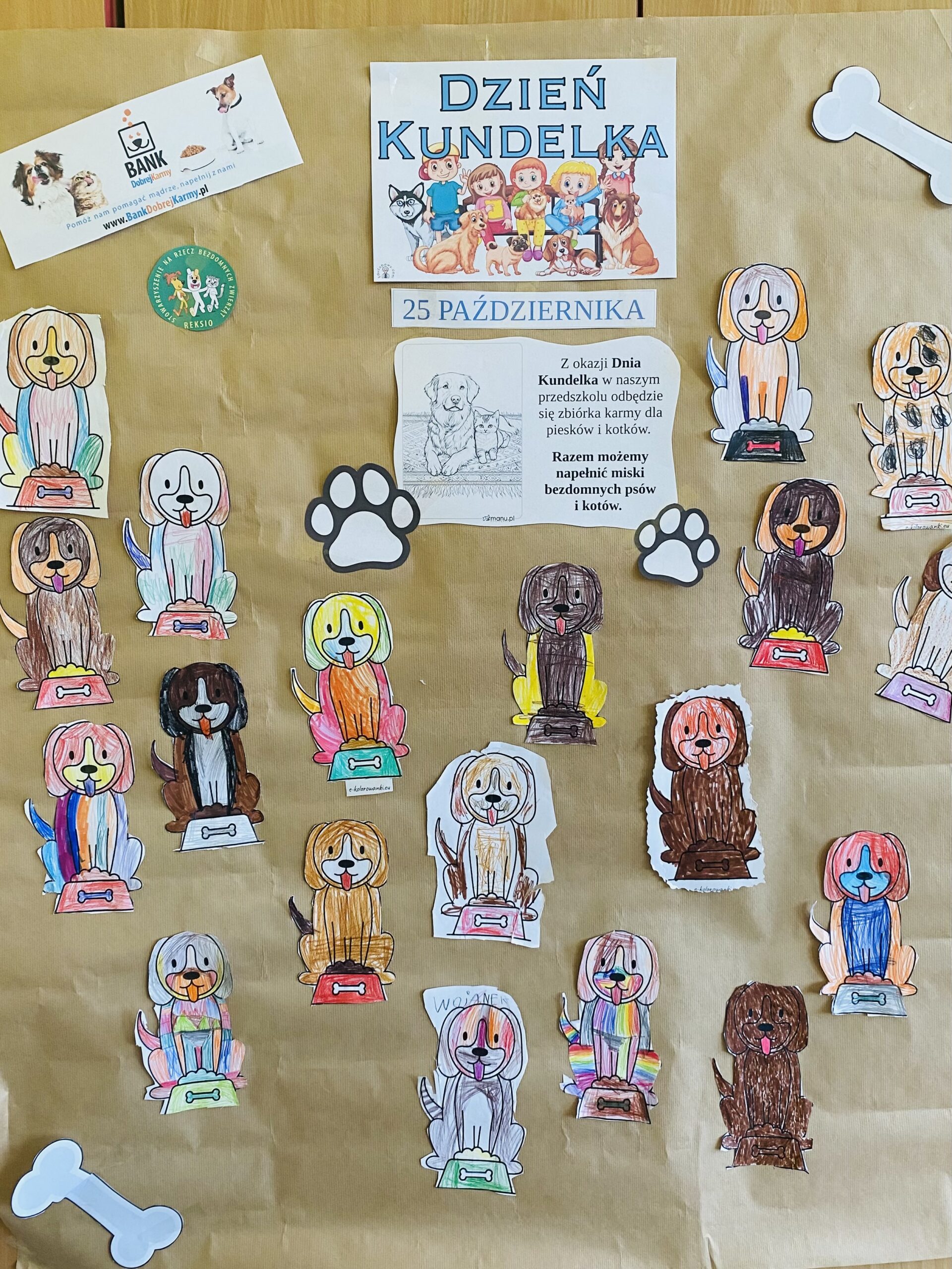 W naszym przedszkolu obchodziliśmy Dzień Kundelka – święto piesków. Dzieci rozmawiały o tym, jak należy dbać o zwierzęta i w jaki sposób możemy im pomagać. Wspólnie oglądaliśmy zdjęcia rożnych psów, dzieliliśmy się opowieściami o swoich pupilach oraz słuchaliśmy zagadek o pieskach. Podczas zajęć dzieci wykonywały wspólny plakat. Powstała piękna wystawa prac plastycznych, która ozdobiła nasze sale i przypomina wszystkim, że każdy pies zasługuje na miłość i opiekę.