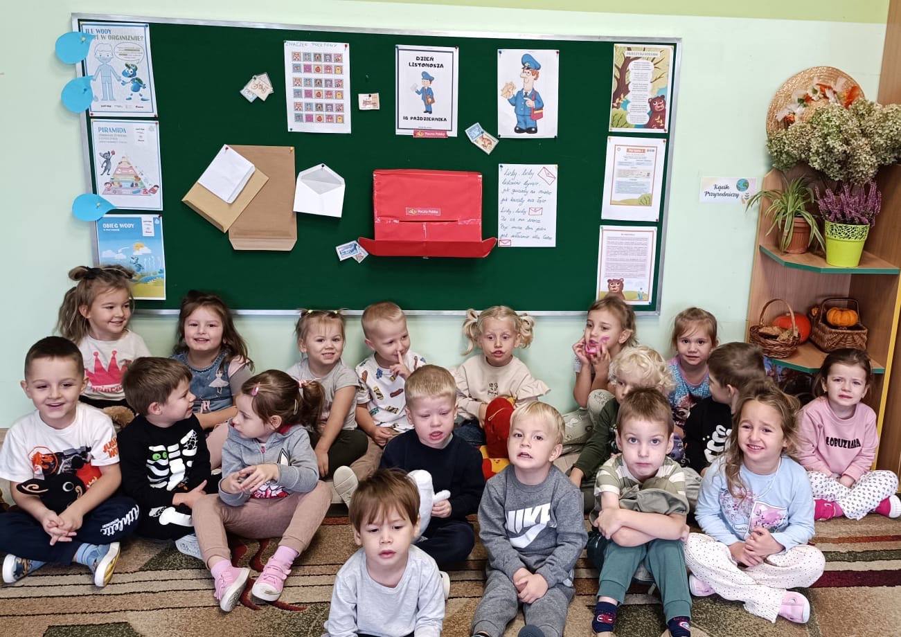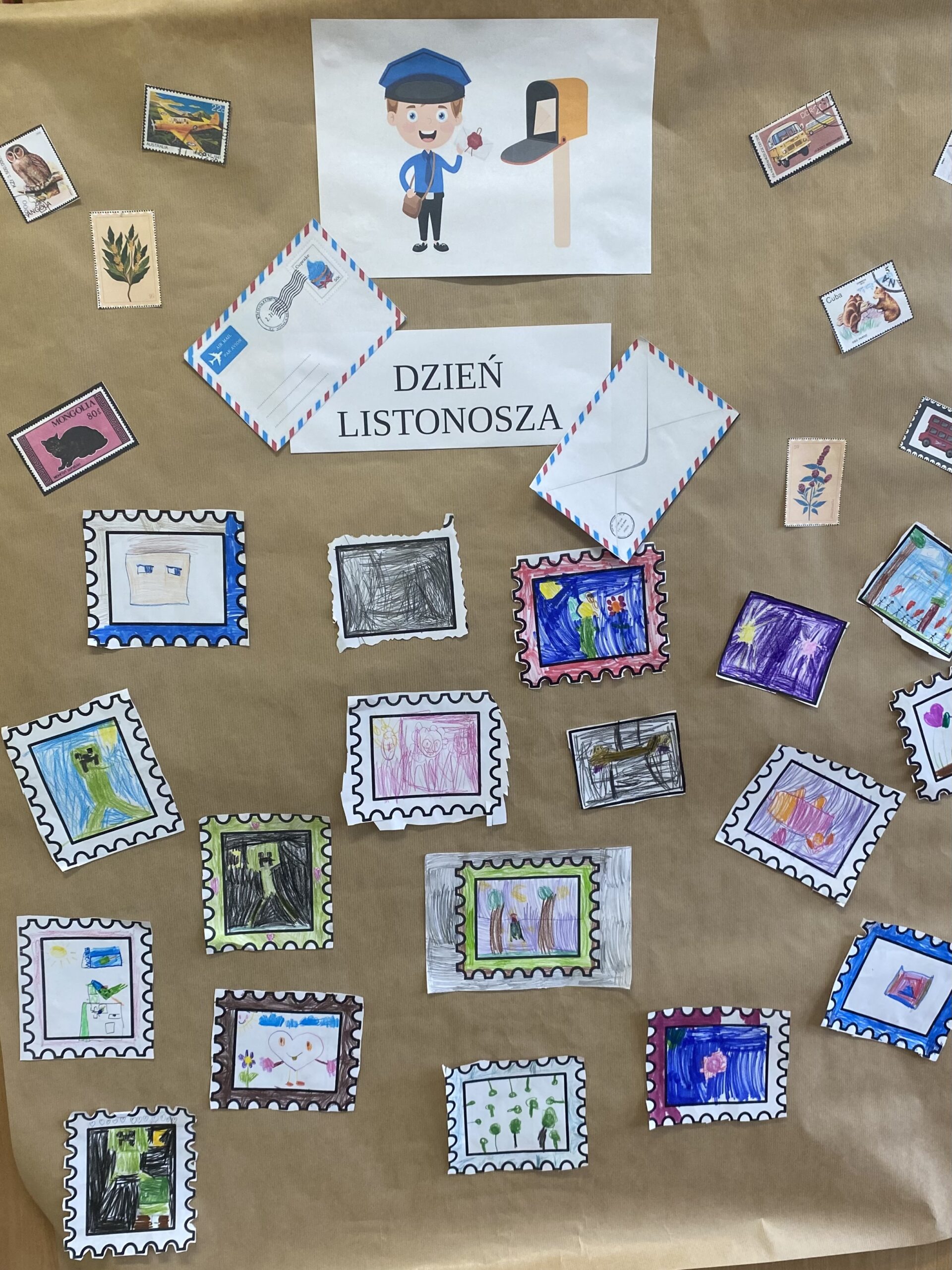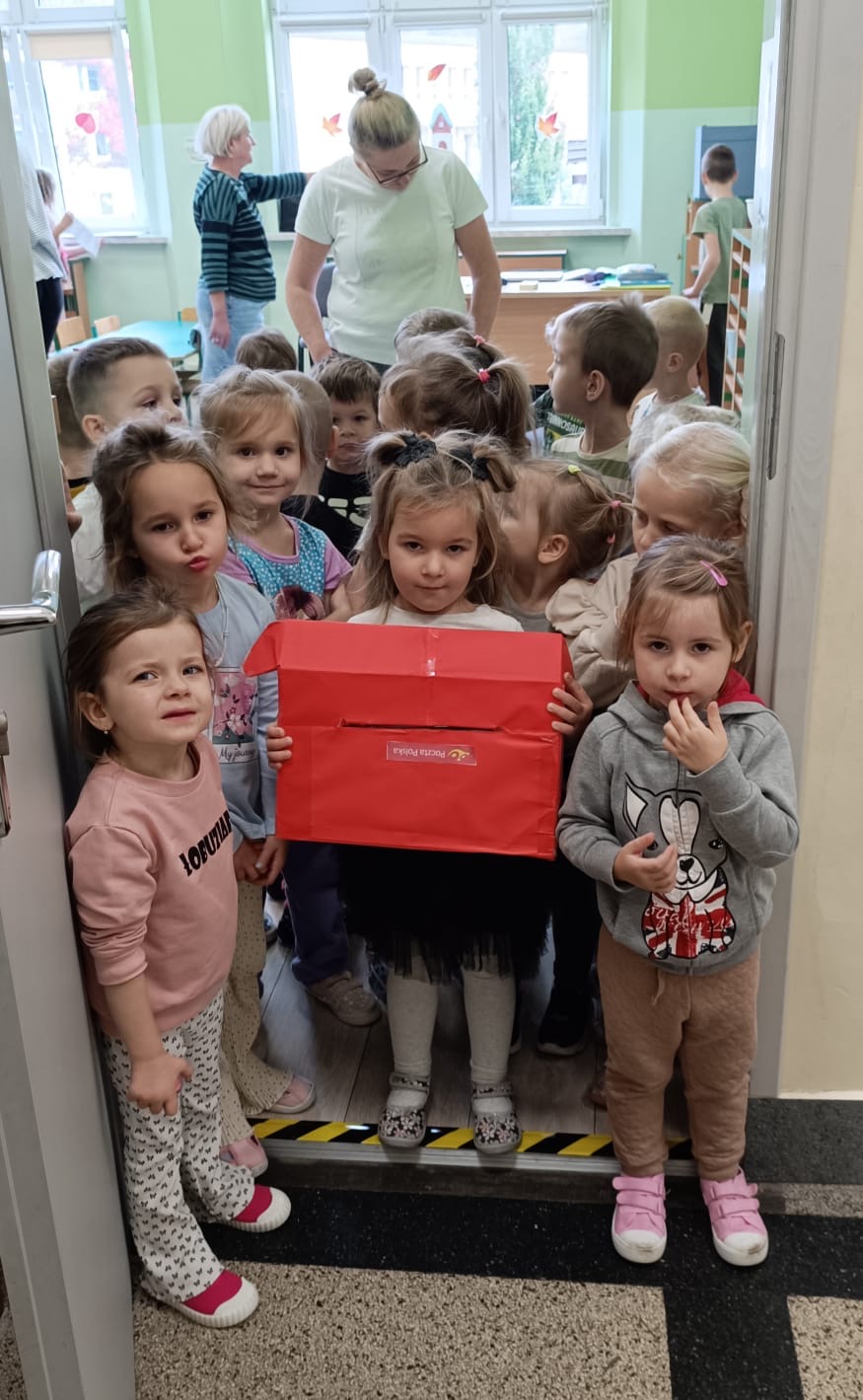 Dzieci poznały zawód listonosza, dowiedziały się, co nosi w swojej torbie i jak wygląda jego strój. Każde dziecko otrzymało kopertę ze znaczkiem pocztowym, którą mogło wrzucić do przygotowanej skrzynki pocztowej. W środku koperty była przygotowana mała niespodzianka dla każdego przedszkolaka 🙂