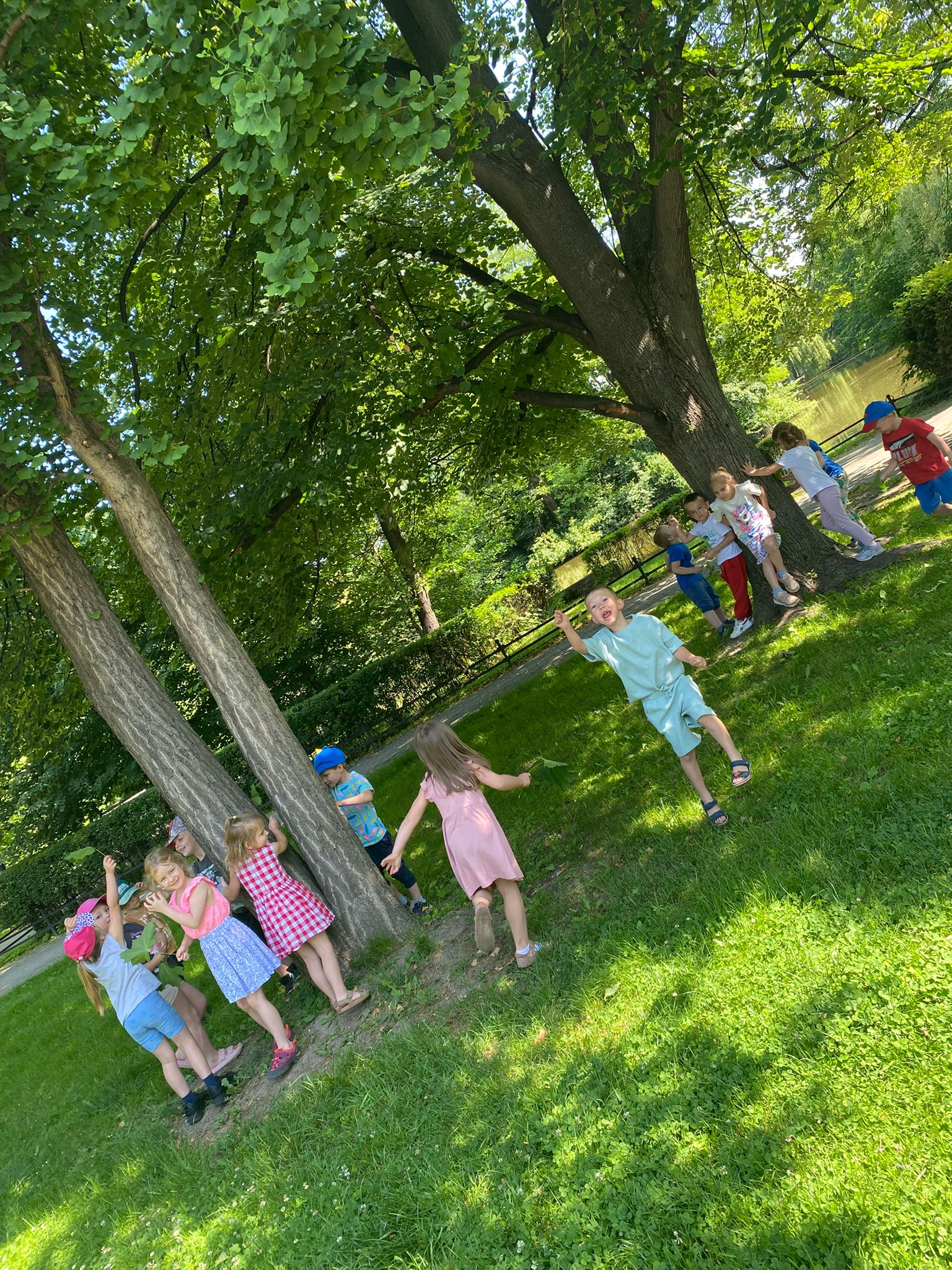 W piątek 13 czerwca z okazji Dnia Pustej Klasy średniaki wzięli udział w wyjatkowych zajęciach na świeżym powietrzu. Celem wyjścia było zbliżenie się do natury i rozwijanie wrażliwości na otaczające środowisko. Wyjście dostarczyło wielu pozytywnych emocji, a dzieci wróciły do przedszkola z uśmiechami na twarzy i głowami pełnymi wrażeń. Na zakończenie przedszkolaki odbijały na kartce papieru liście za pomocą techniki frotażu.