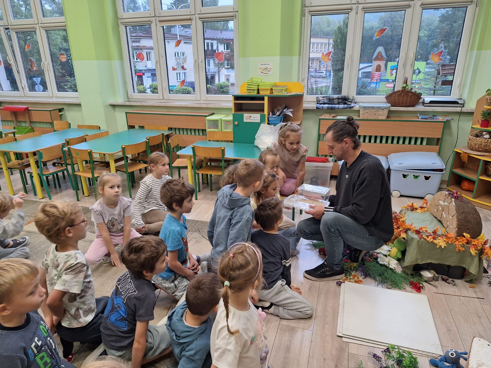 Nasze przedszkolaki wzięły udział w warsztatach o świecie mrówek. Dzieci miały okazję poznać budowę mrowiska, rodzaje mrówek oraz hierarchię jaka w nim panuje. Dowiedziały się także jakie zadania wykonują mrówki i ile potrafią unieść pomimo swej niewielkiej wielkości i wagi. Ponadto dzieci z bliska mogły zobaczyć jak wygląda Królowa mrówek i robotnice. Na zakończenie spotkania dzieci miały okazję spróbować spadziowego miodu oraz otrzymały certyfikaty, linijki i materiały do wykonania własnego małego mrowiska.