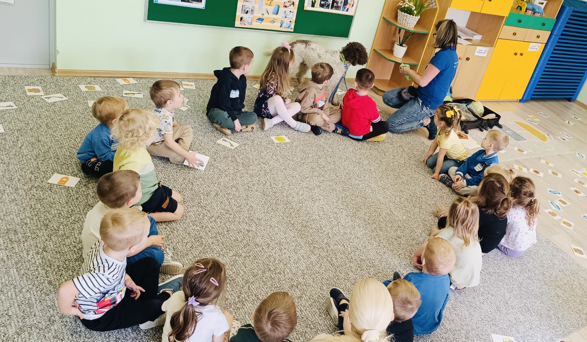 Właścicielka pieska opowiedziała dzieciom o codziennych obowiązkach związanych z posiadaniem psa, takich jak karmienie, spacery czy dbanie o jego zdrowie. Dzieci dowiedziały się również, jak bezpiecznie podchodzić do psa i jak rozpoznawać jego zachowanie.