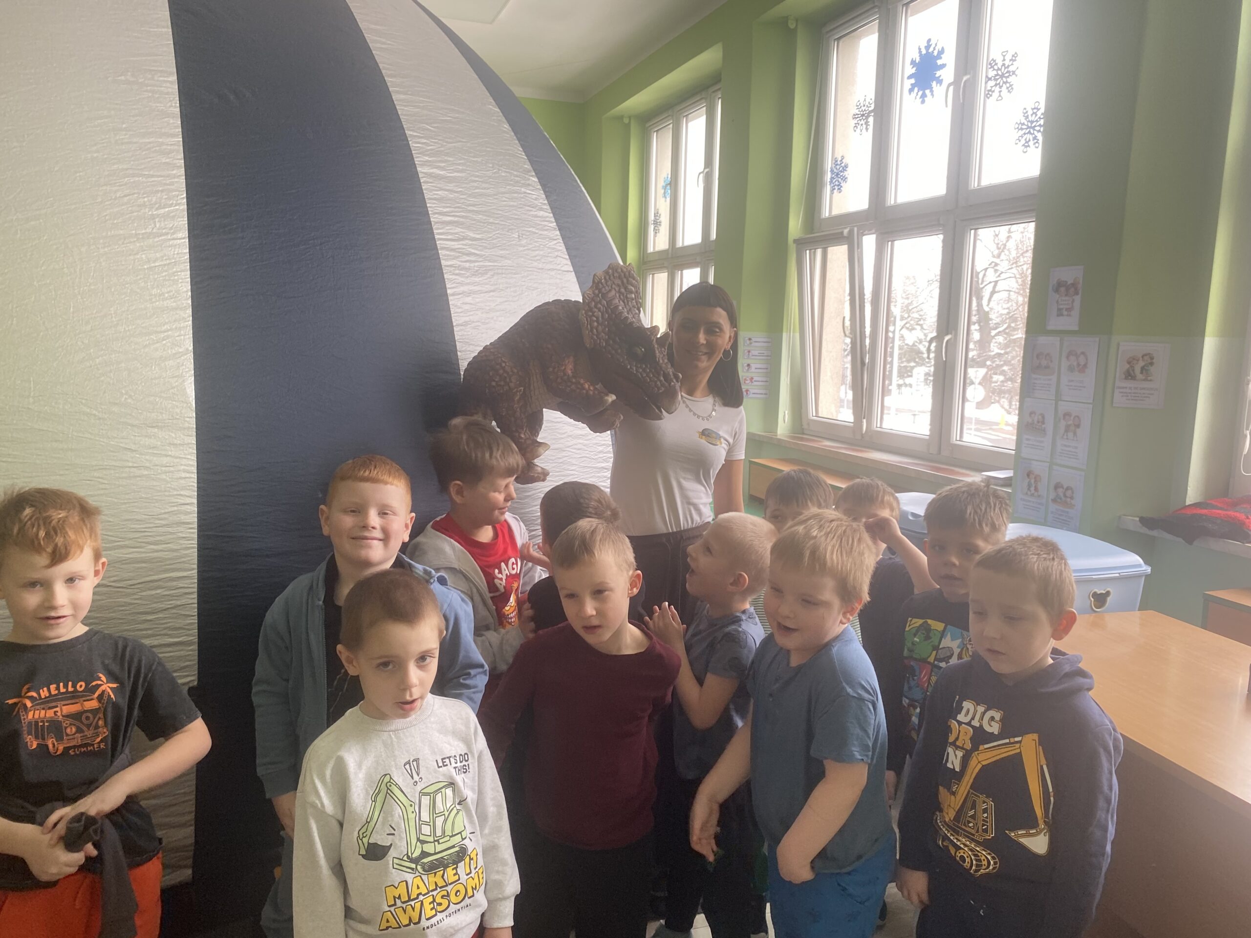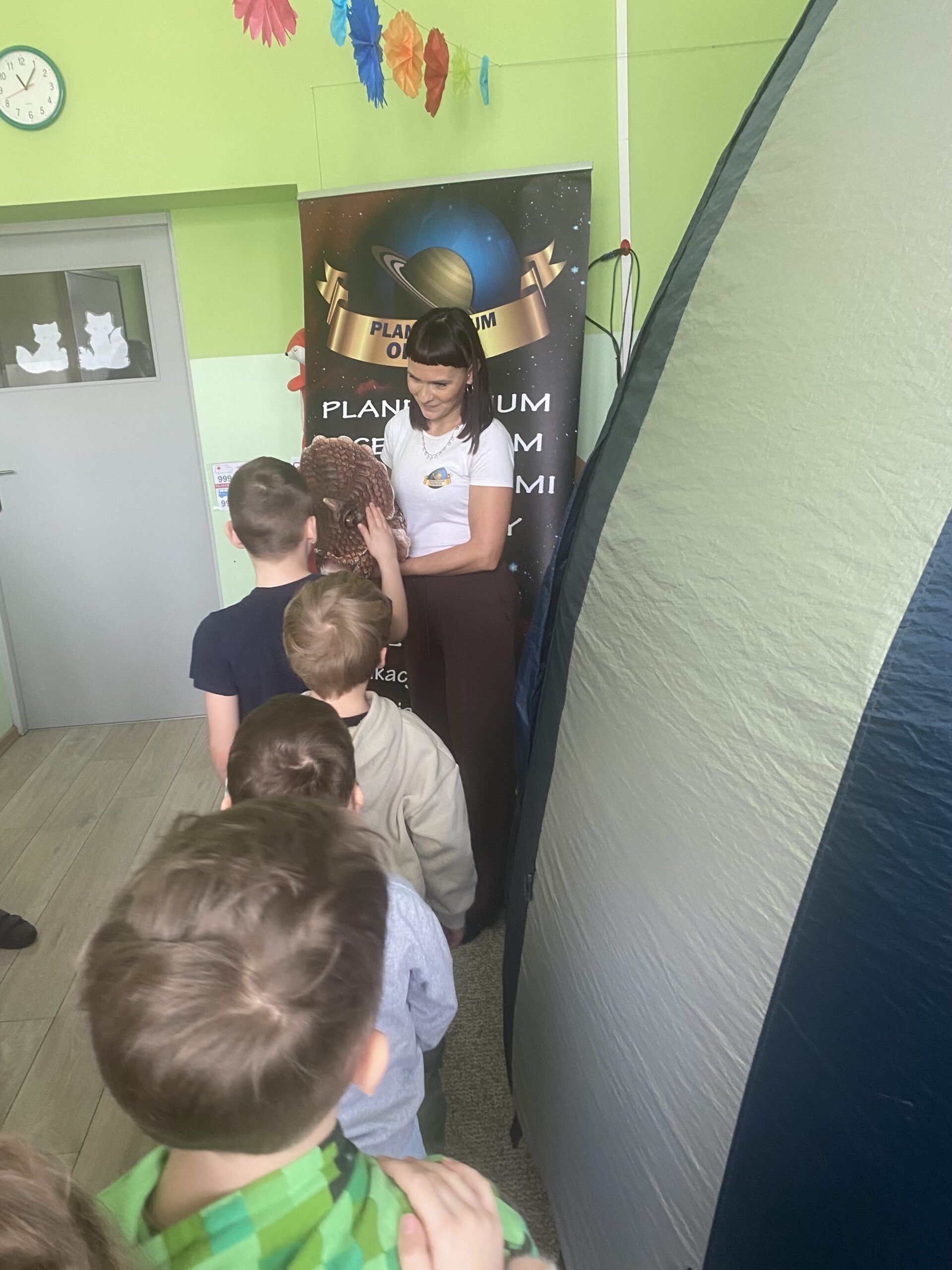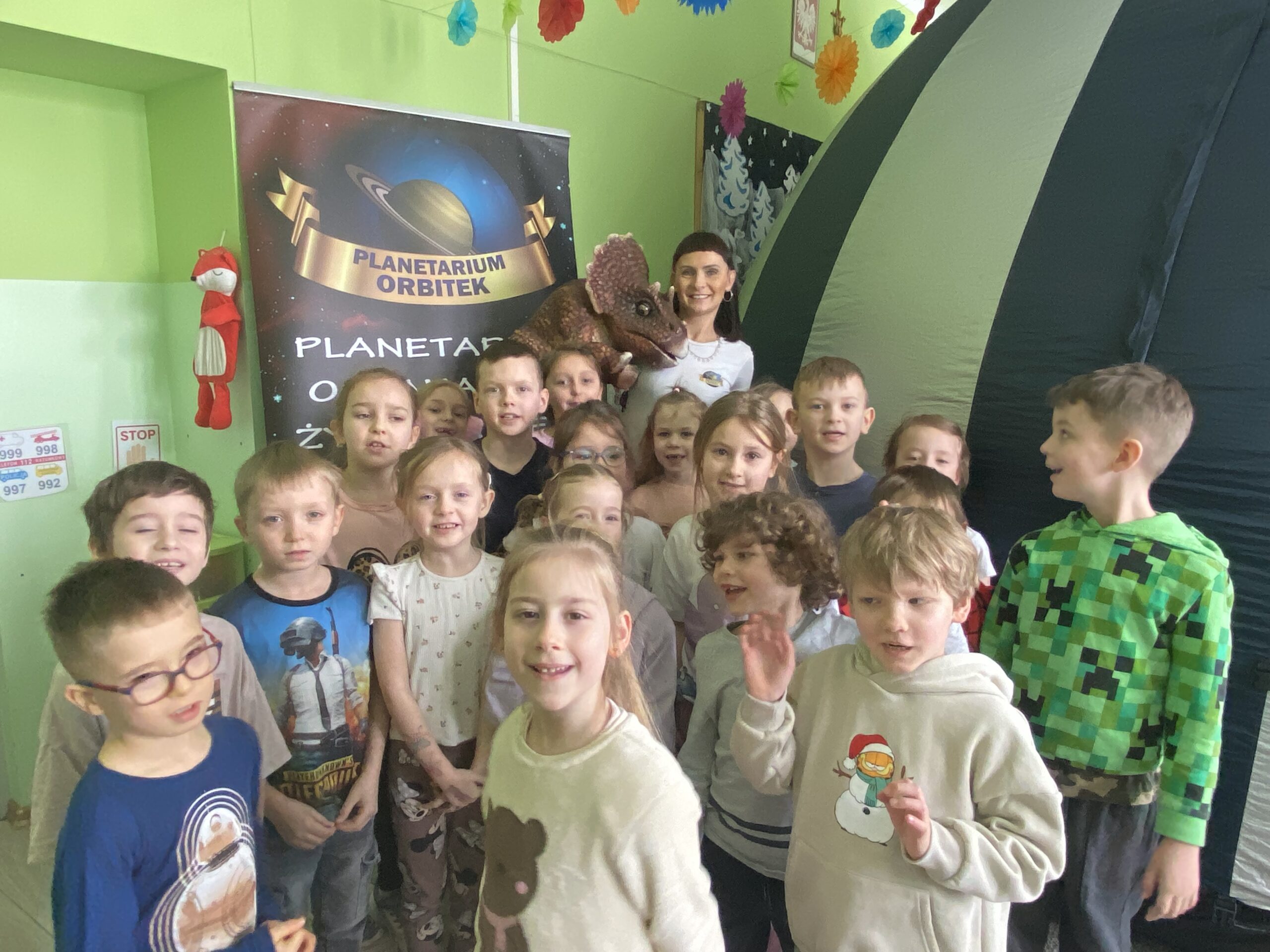 Mobilne planetarium w przedszkolu to wyjątkowe wydarzenie, które przenosi dzieci w fascynujący świat – a w połączeniu z tematyką dinozaurów staje się prawdziwą przygodą w czasie! 🌍🦖