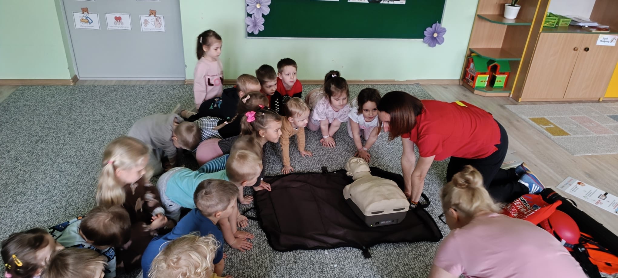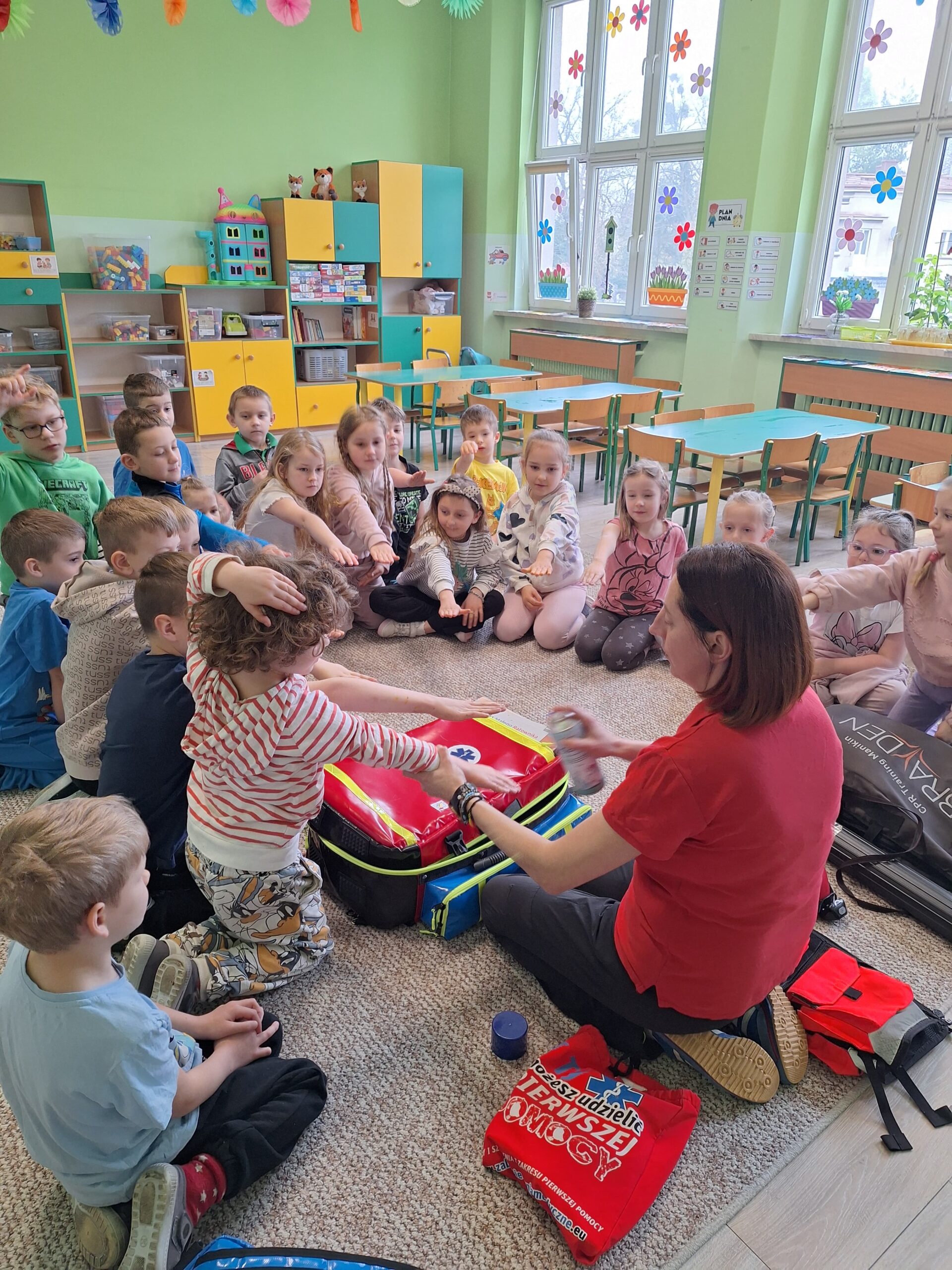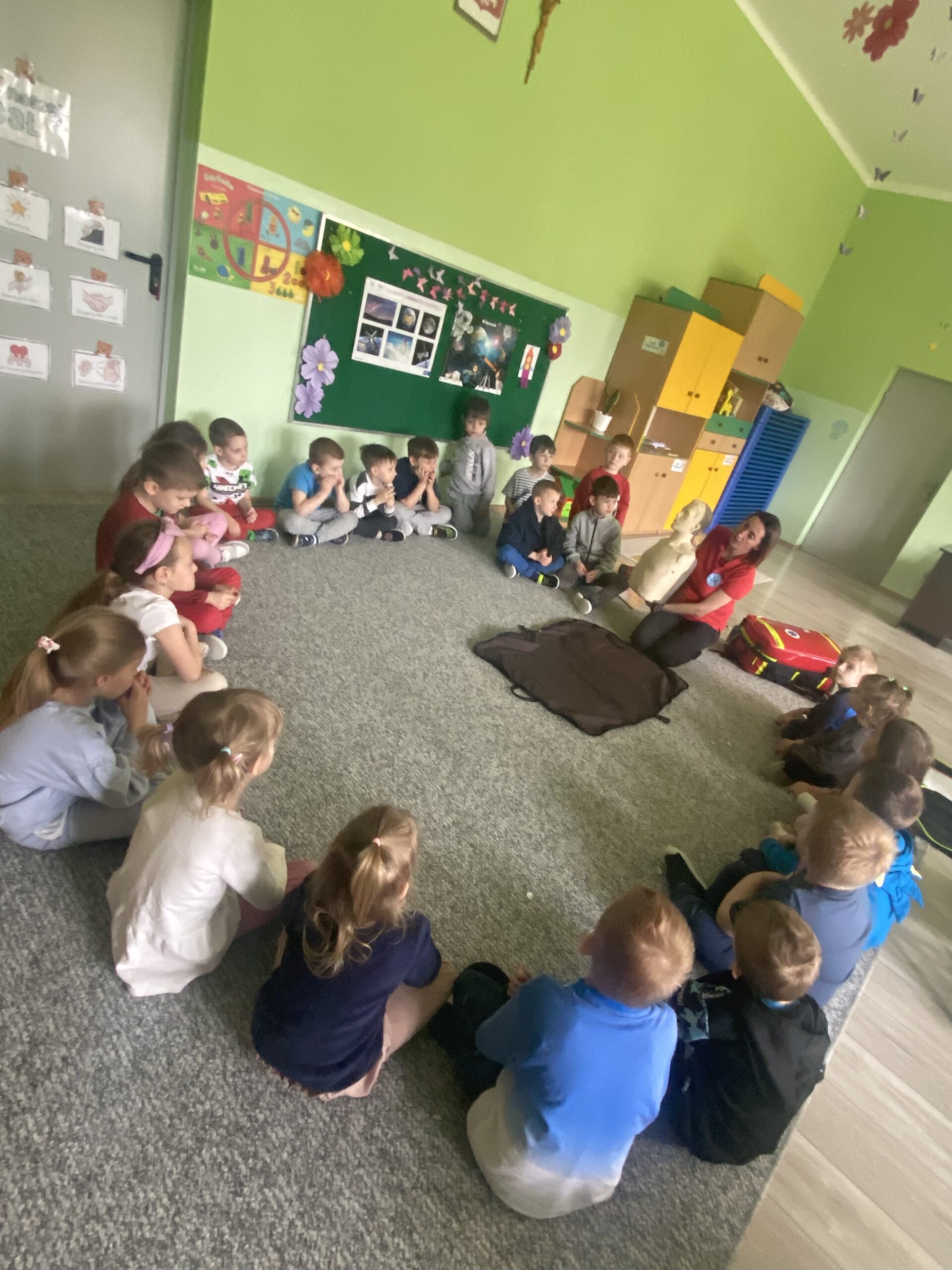 W naszym przedszkolu odbyły się warsztaty z zakresu pierwszej pomocy. Dzieci poznały zasady reagowania w sytuacjach zagrożenia oraz utrwaliły ważne numery alarmowe. Podczas zajęć zaprezentowano również, na czym polega resuscytacja krążeniowo-oddechowa oraz jak wezwać pomoc. Warsztaty były cenną lekcją, która zwiększyła świadomość i bezpieczeństwo naszych przedszkolaków.