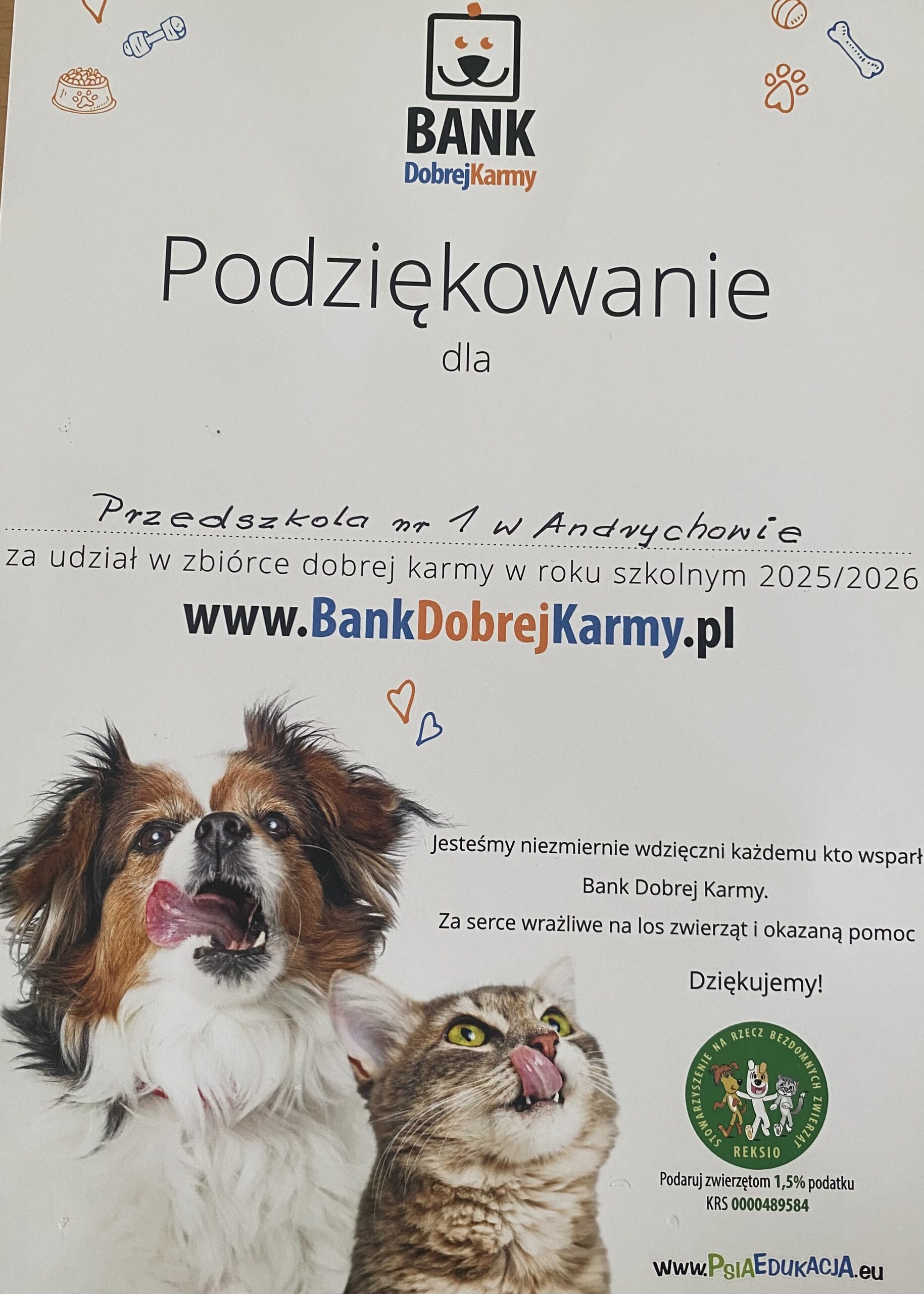 Serdecznie dziękujemy Rodzicom i Dzieciom za udział w zbiórce żywności dla piesków i kotków.