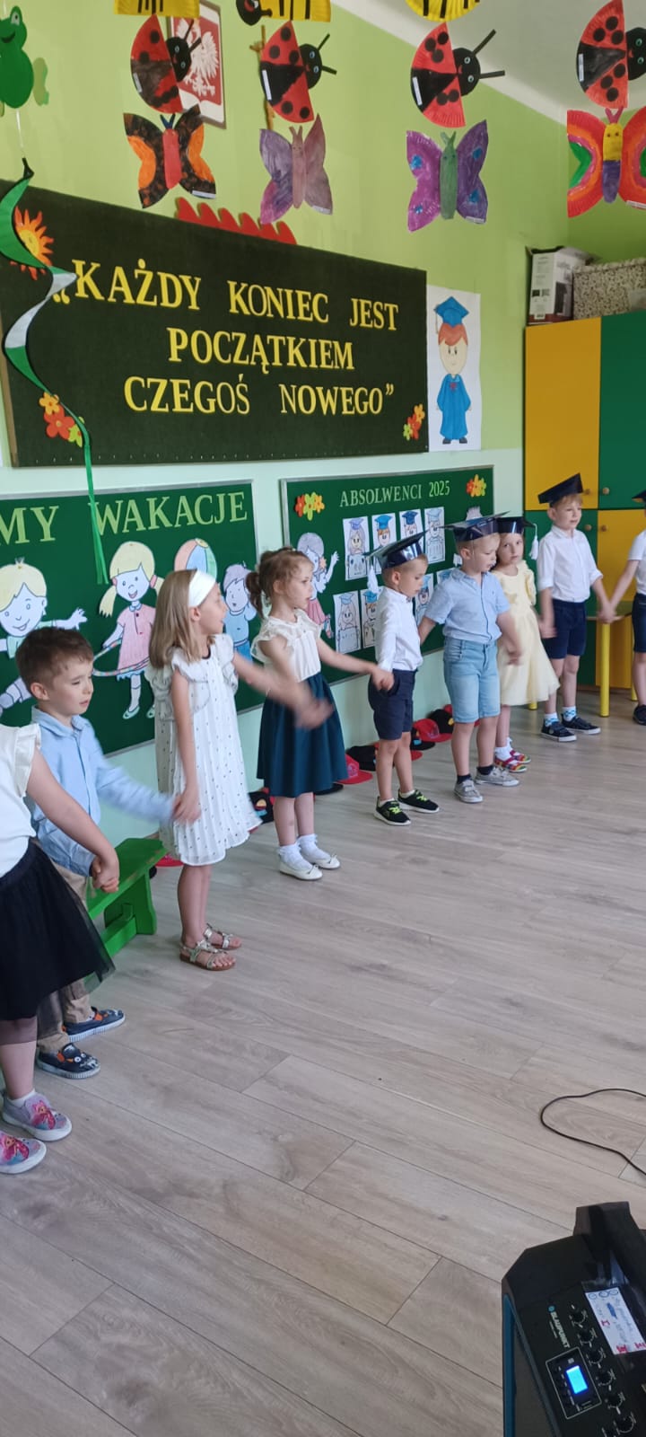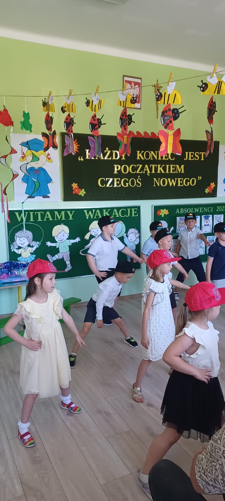 Zakończenie roku szkolnego jest bardzo ważnym wydarzeniem, zwłaszcza gdy jest to rozstanie się z rolą przedszkolaka. Absolwenci uroczyście pożegnali swoje panie – prezentując swoje umiejętności wokalne, recytatorskie oraz taneczne. Nie mogło zabraknąć licznej publiczności i wzruszeń zebranych rodziców i bliskich. My również życzymy naszym wspaniałym absolwentom, aby szkoła przynosiła im wiele radości i okazji do zdobywania nowej wiedzy.