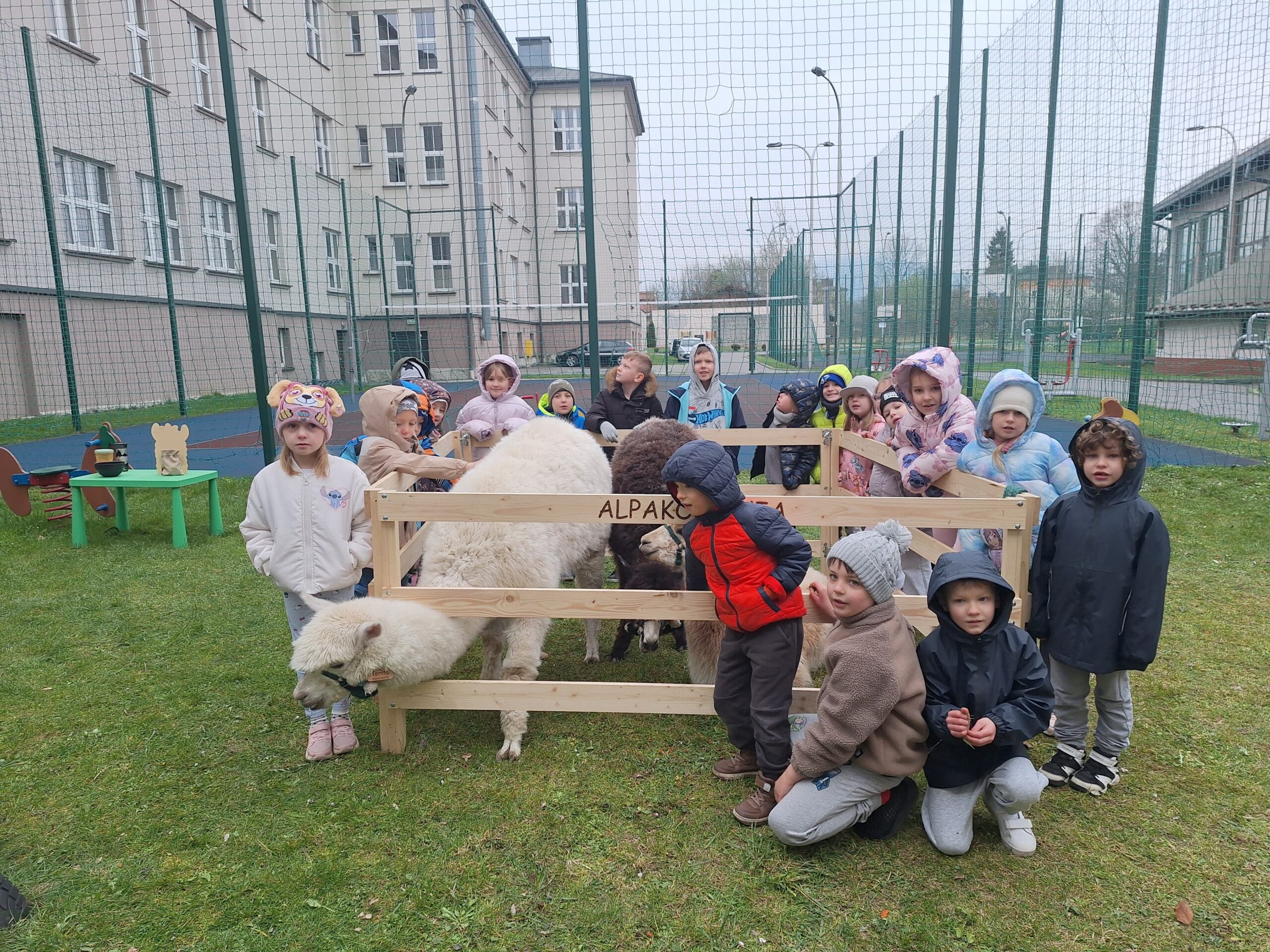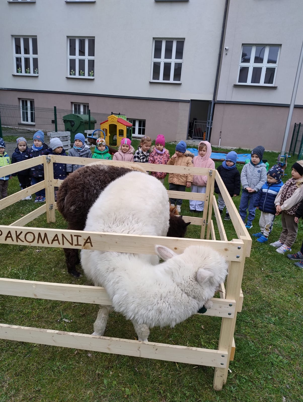 W naszym przedszkolu odbyło się wyjątkowe spotkanie z alpakami, które dostarczyło dzieciom wielu radosnych i niezapomnianych chwil. Przedszkolaki z niecierpliwością oczekiwały na niezwykłych gości. Gdy alpaki pojawiły się na terenie przedszkola, wzbudziły ogromne zainteresowanie i zachwyt.
