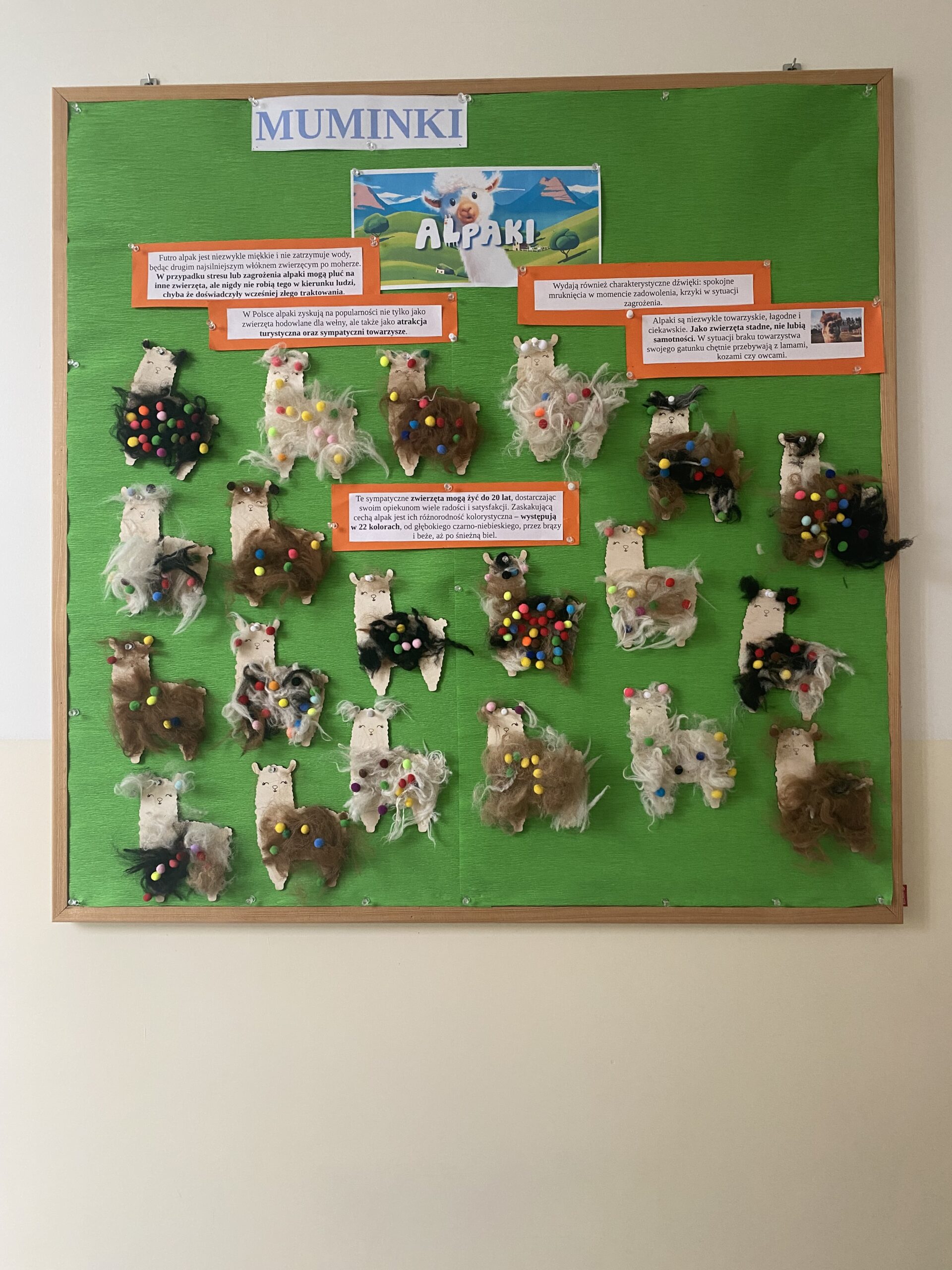 Przedszkolaki wzięły udział w pracy plastycznej z wykorzystaniem prawdziwego runa alpak. Każde dziecko mogło dotknąć miękkiej wełny i stworzyć własną, wyjątkową pracę. Powstały piękne i pomysłowe dzieła, które będą wspaniałą pamiątką tego dnia.