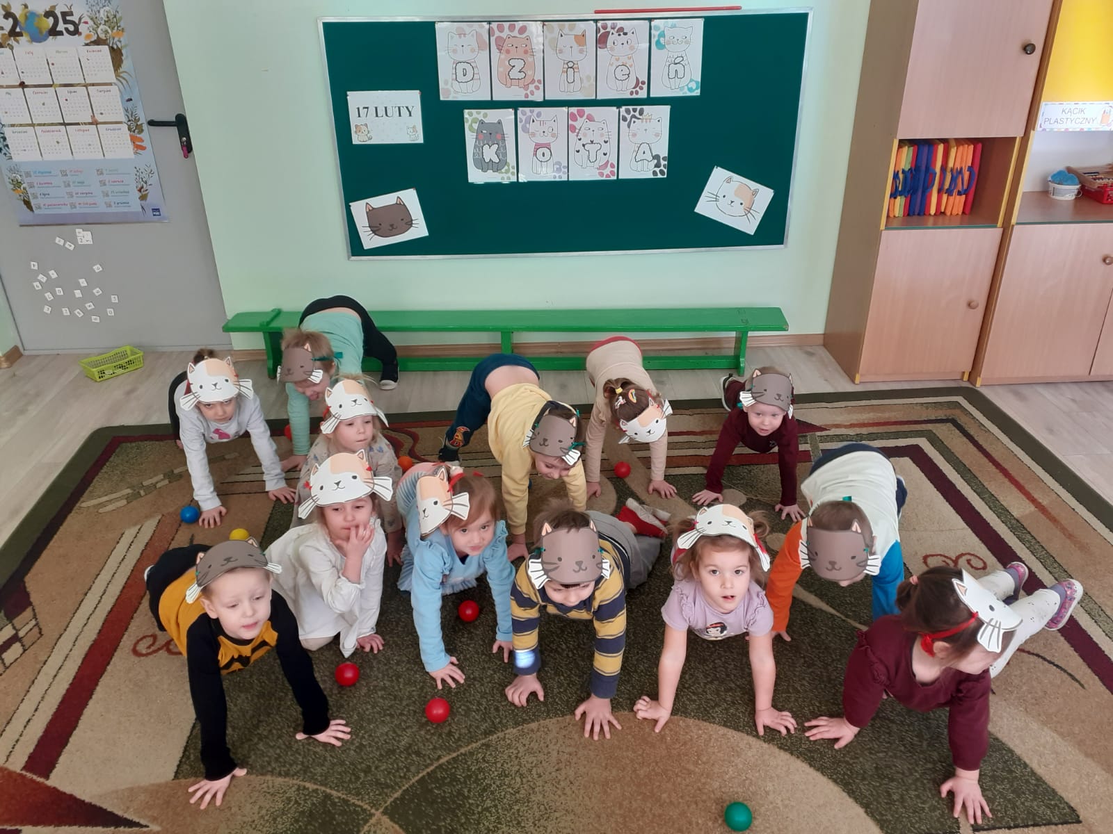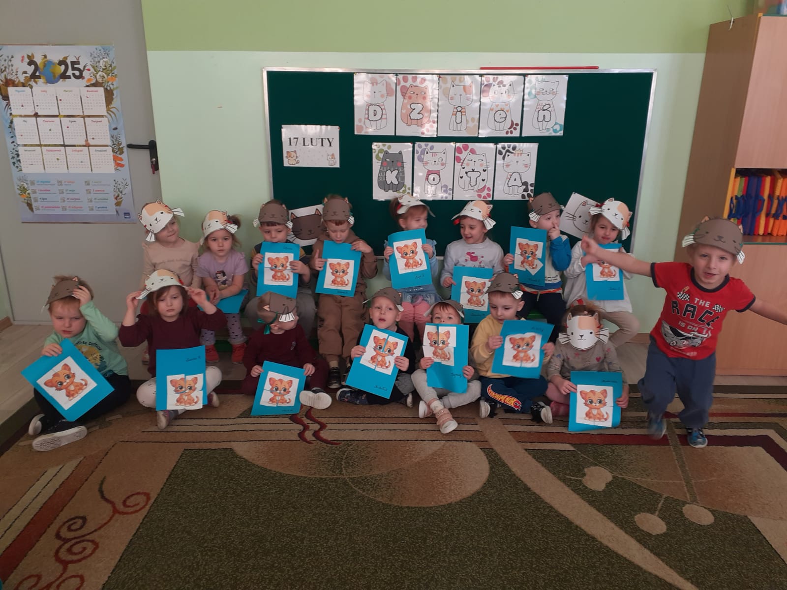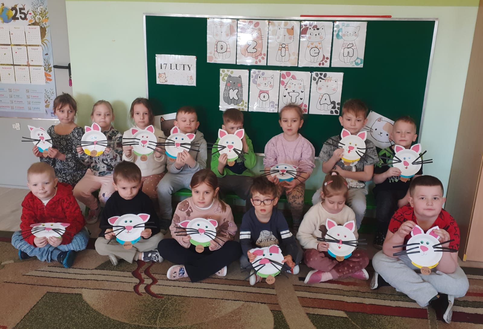 17 lutego obchodziliśmy w naszym przedszkolu  „Dzień Kota”. Zajęcia zostały zorganizowane w celu przekazania dzieciom informacji na temat prawidłowej opieki nad naszymi pupilami oraz uwrażliwienia i zwrócenia uwagi na los porzuconych i bezdomnych zwierząt. W tym dniu wszystkie przedszkolaki wcielały się w swoich ulubieńców i brały udział w „kocich zabawach”.