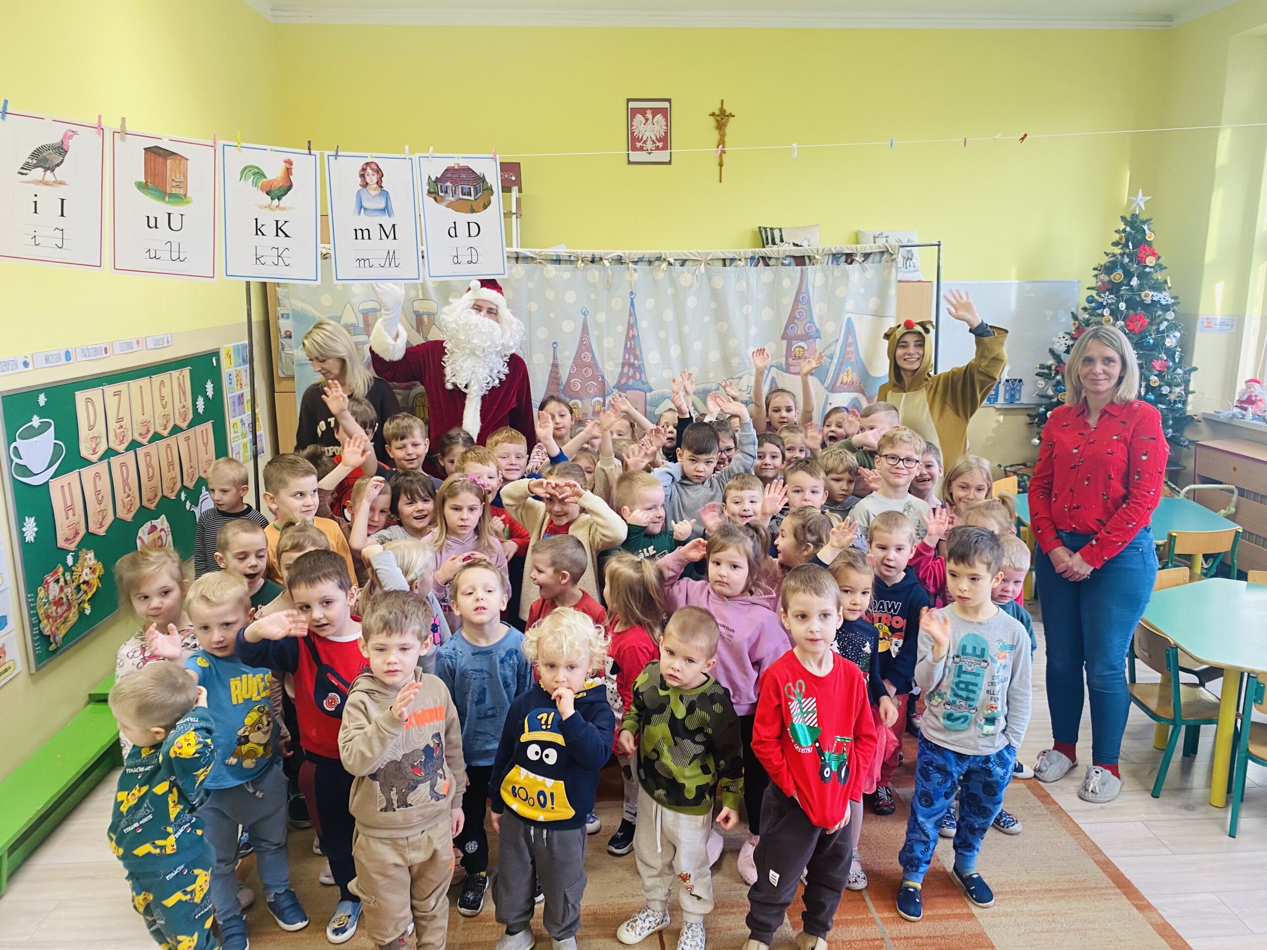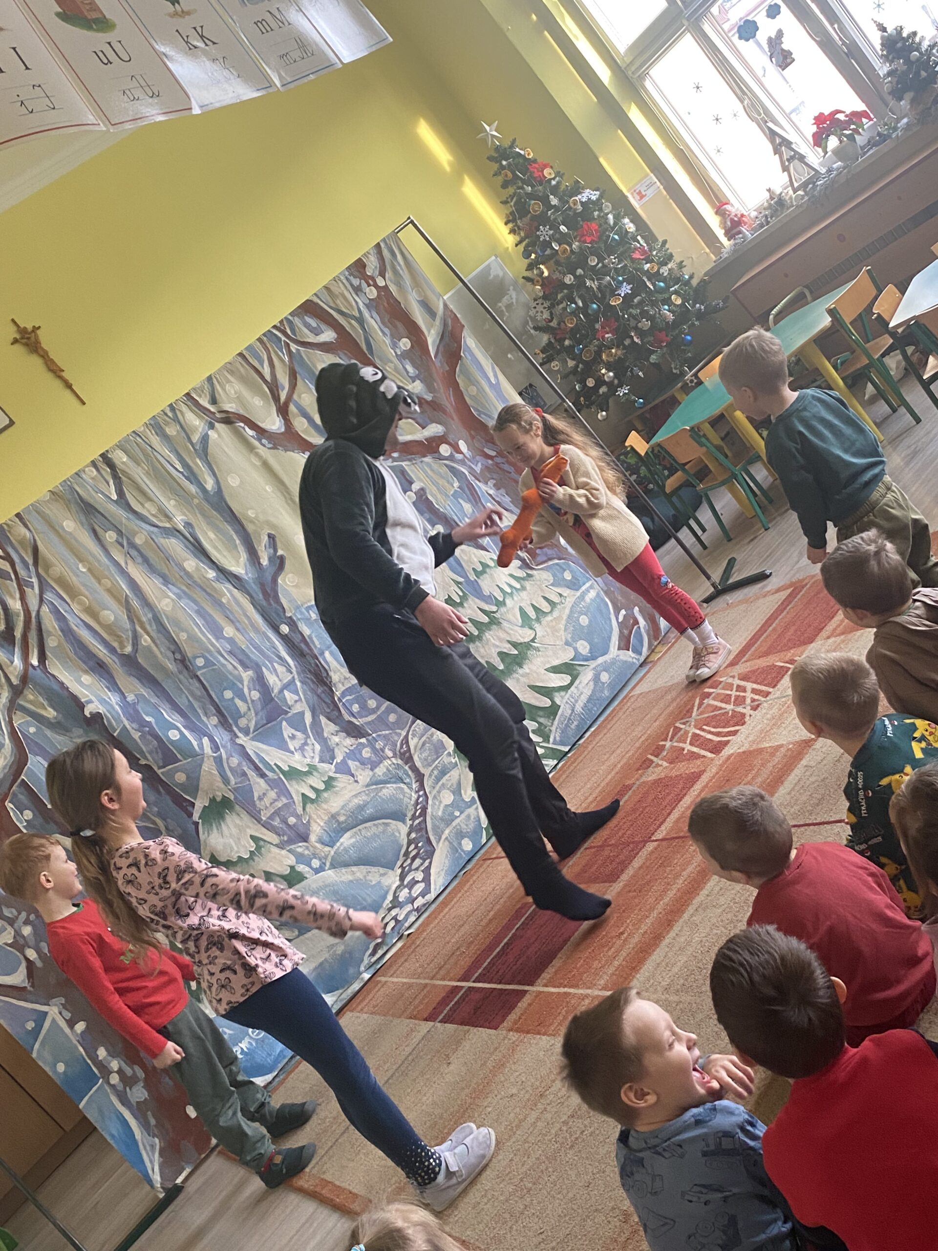 Teatrzyk świąteczny w przedszkolu był ciekawym wydarzeniem, który wprowadził wszystkich w radosny świąteczny nastrój. Dzieci z zainteresowaniem oglądały przedstawienie, a jednocześnie były w nie aktywnie włączone – odpowiadały na pytania, pomagały bohaterom, naśladowały ruchy i wspólnie śpiewały.